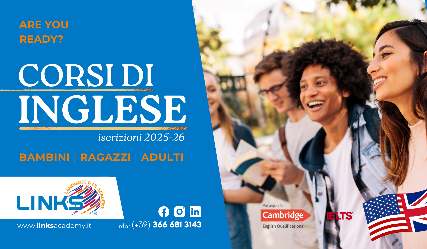 Siamo una scuola di lingue rivolta a studenti di ogni fascia d’età e di ogni livello di competenza, che prepara alle certificazioni internazionali – Cambridge, IELTS, TOEFL, DELE, ECDL, etc. – e che punta alla formazione della lingua straniera scelta nei suoi diversi ambiti scolastici, universitari, lavorativi e comunicativi.
